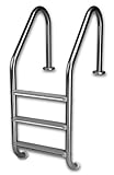 The Inter-Fab three step ladder with Sure Step treads is one of our best selling residential stainless steel 304 ladders (1.90" outer diameter tubing). It comes with three stainless steel steps with a slip resistant gray plastic top tread as well as two rubber bumpers to protect your pool wall. The rails are 20" on center apart. If you have a salt pool we recommend that you purchase our Rust Buster sacrificial zinc anode to help protect your rail from rust. Also available in several powder coated colors: white, earth, coppervein, hammertone gray or light gray. You must purchase the anchors and escutcheons separately. Made in the United States and has a three year warranty. Read more